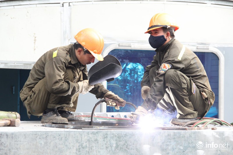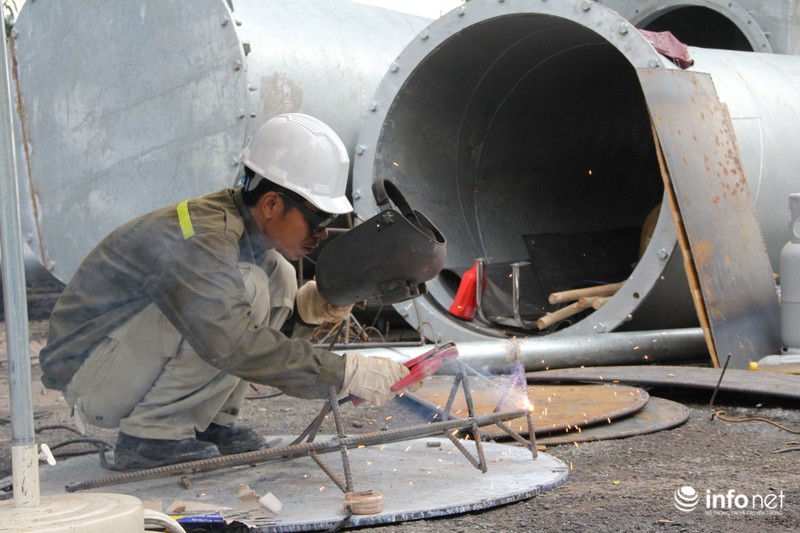 Hàng trăm công nhân đang ráo riết lắp đặt và thi công hệ thống máy bơm |