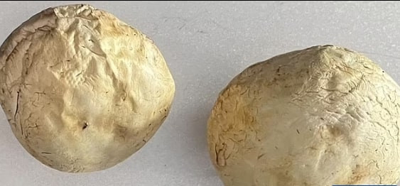 Sau khi di chuyển trên quãng đường dài, cây nấm tươi trước đây bị mất nước rõ rệt, teo tóp, nhăn nheo đáng sợ.