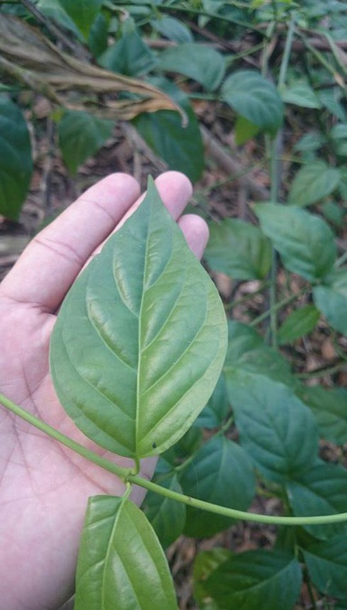 Cây lá ngón thân thảo, nhỏ hơn chiếc đũa và có thể bò dài tới 12 mét. |