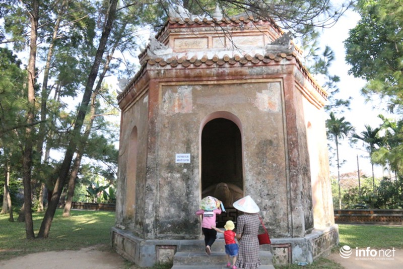 Nhiều du khách đến tham quan du lịch ở chùa Thiên Mụ thường vào trong xem, chiêm ngưỡng, chụp ảnh. Những hình ảnh mới nhất PV Infonet ghi nhận ở bia “Ngự kiến Thiên Mụ tự trong chùa Thiên Mụ (TP Huế):