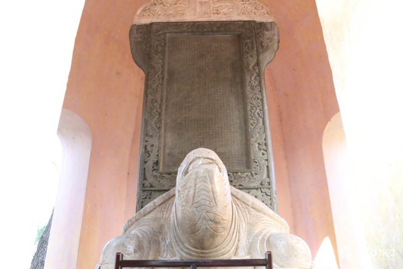 Bia được dựng trên lưng con rùa đá. |