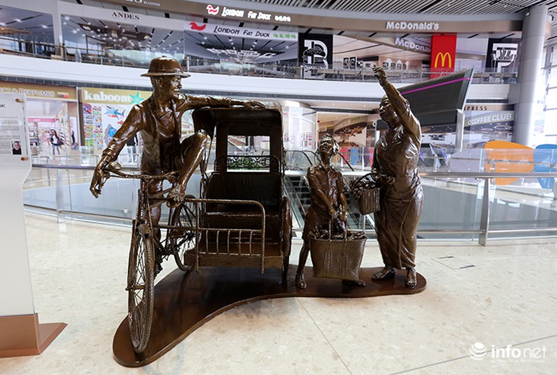 Xung quanh nhà ga có nhiều tác phẩm nghệ thuật mô tả những nét đặc trưng của nhiều vùng miền. Trong ảnh: Nghề đạp xích lô - một trong những nghề cổ của đất nước Singapore. |