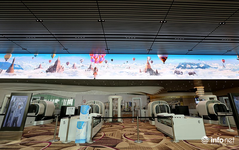 Quầy làm thủ tục an ninh có thiết kế màn hình led 3D dài giúp hành khách giải trí, thư giãn trong thời gian chờ làm thủ tục. |