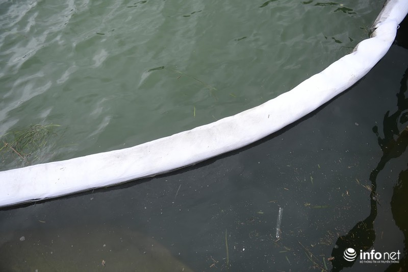 Ông Bùi Đăng Khoa - Phó Giám đốc Công ty Nước sạch sông Đà cho biết: “Dù đã cấp nước trở lại, kết quả xét nghiệm nước đạt tiêu chuẩn của Bộ TNMT, về cảm quan thì toàn bộ mặt hồ không còn dầu. Nhưng để không còn rủi ro nào về chất lượng mặt nước, công ty vẫn cho triển khai đặt các tấm lọc dầu”. |
