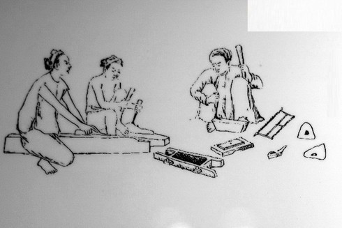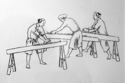 1. Khung gỗ và bản khắc được gia công để làm khuôn. Đây là giai đoạn đầu tiên của quy trình đúc tiền. Ảnh chụp lại từ Bào tàng TP HCM. |
