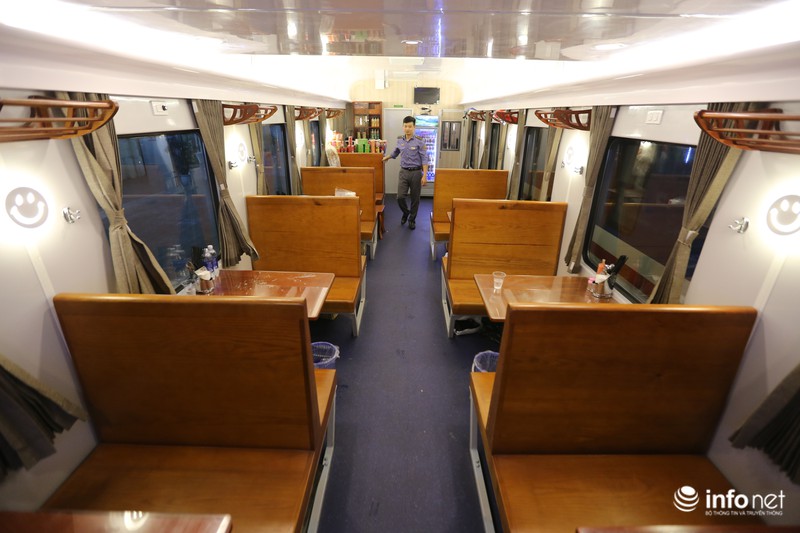 Toa ăn cũng được đóng mới và đưa lên giữa đoàn tàu để hành khách có thể thuận tiện đi lại và sử dụng các dịch vụ. |