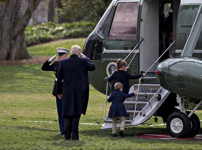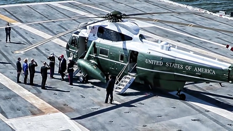Trực thăng Marine One chuyên chở Tổng thống Mỹ Trump đi công tác.