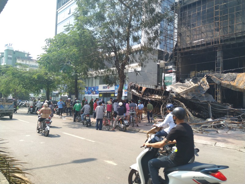 Người dân hiếu kỳ đứng xem hiện trường vụ việc sau cháy khi cơ quan chức năng điều tra vụ việc sáng 26/9. |