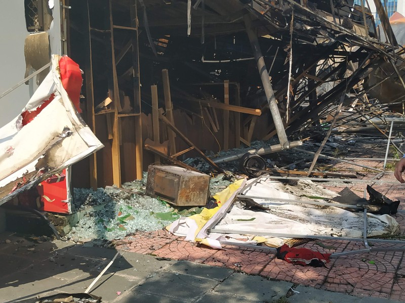 Trung tâm điện máy Hoàng Gia ngổn ngang, trơ trụi sau khi "bà hỏa" ghé qua. |