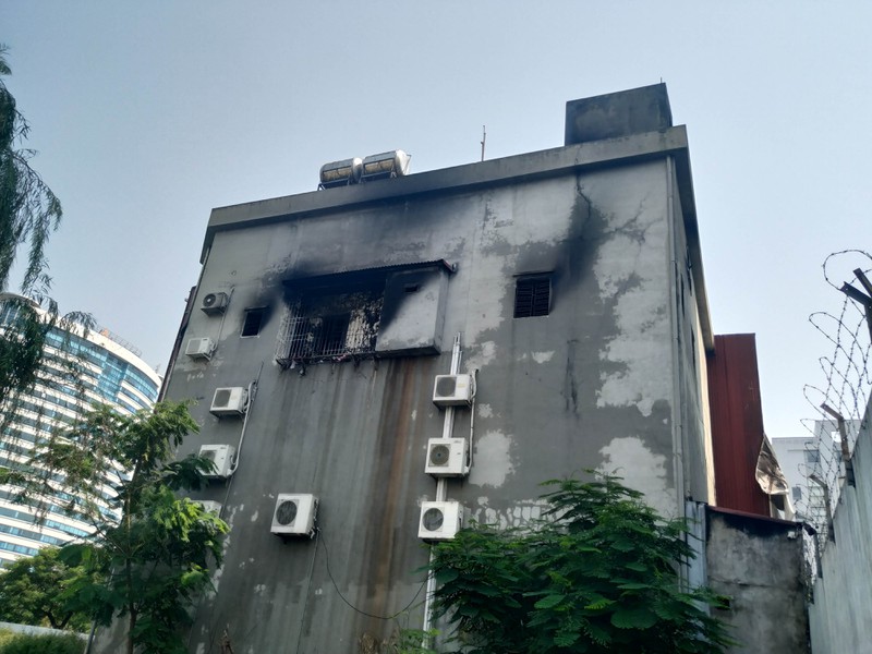 Phía sau Trung tâm điện máy Hoàng Gia sau vụ cháy. |