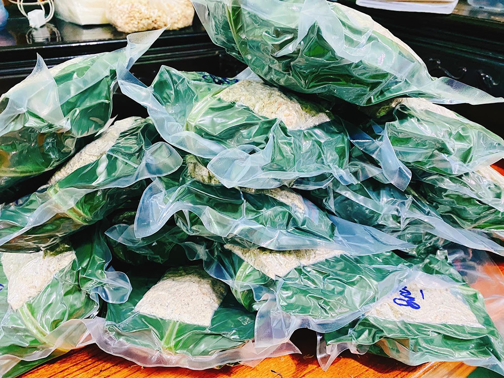 “Hàng này tôi không làm mà đặt sỉ một bếp lớn ở trên Điện Biên. Họ đồ xôi và đóng túi hút chân không rồi chuyển xuống Hà Nội cho tôi mỗi ngày”, chị nói. Do đó, ngày nào chị cũng đăng bán trên “chợ mạng”, đặc biệt là các chợ chung cư online.