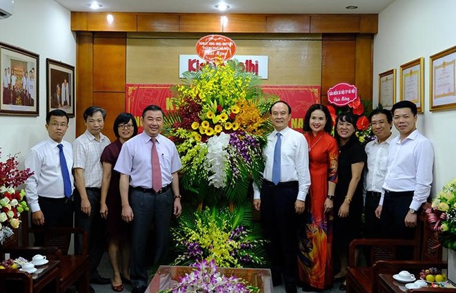 | Phó Chủ tịch Thường trực HĐND TP Nguyễn Ngọc Tuấn chúc mừng báo Kinh tế & Đô thị nhân dịp kỷ niệm 95 năm Ngày Báo chí cách mạng Việt Nam. Ảnh: Phạm Hùng |