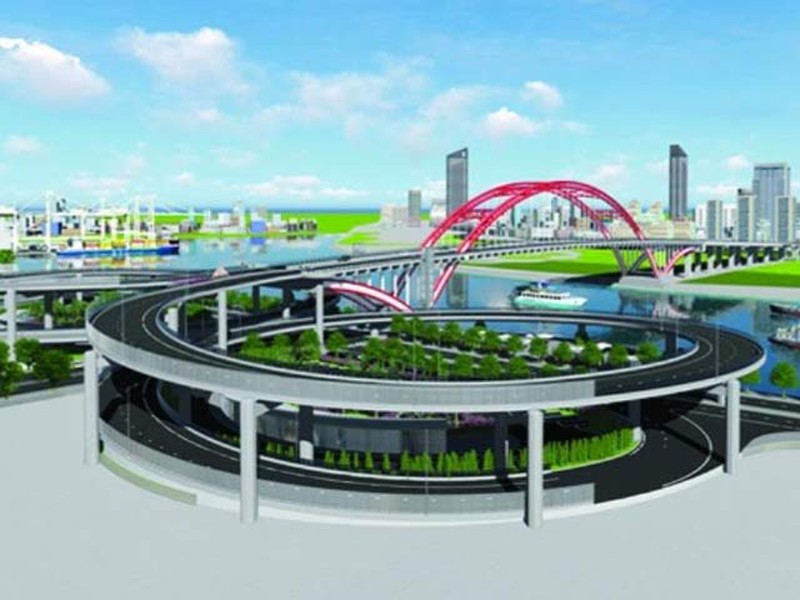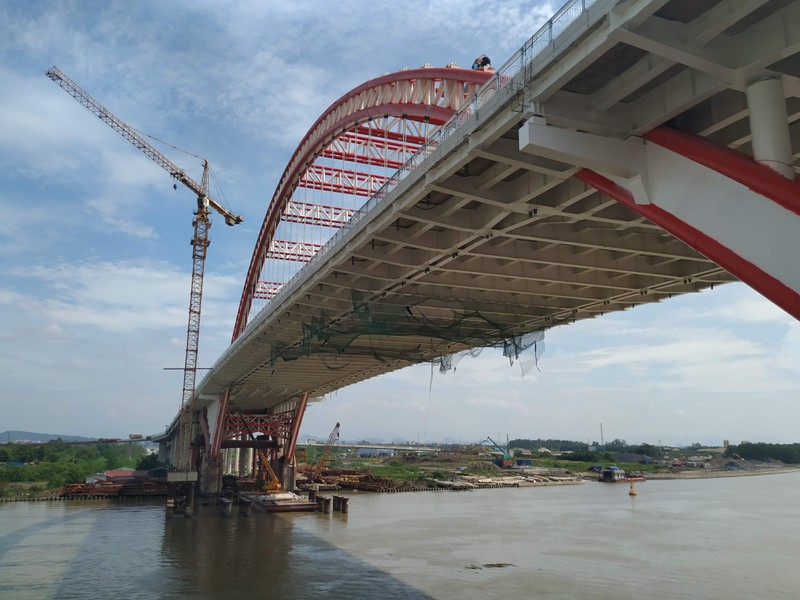 Phần vòm cầu đã được thi công xong với hình hài khá "bắt mắt". |