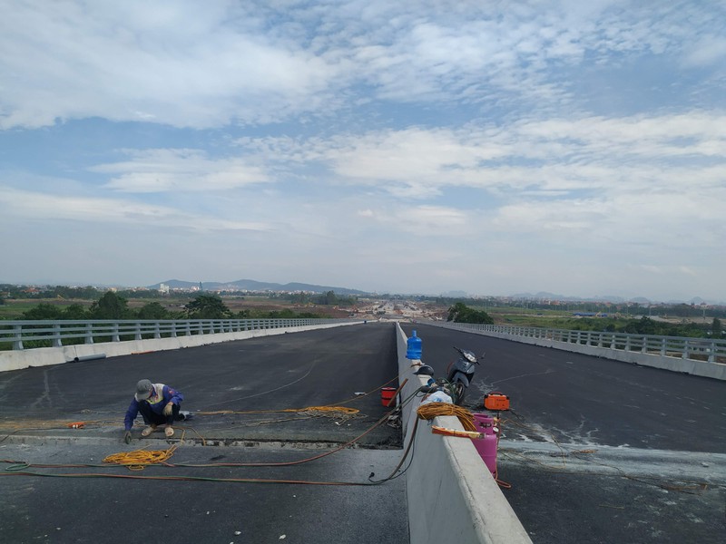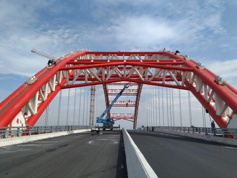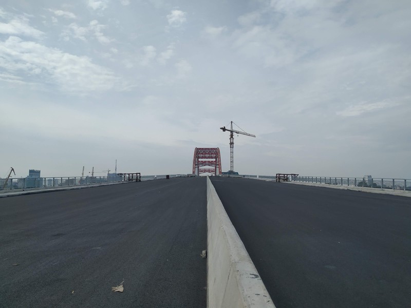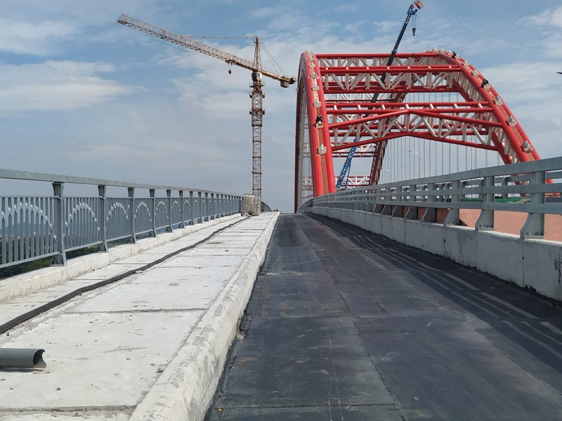Mặt cầu đã được trải nhựa và đang dần hoàn thiện những hạng mục cuối cùng. |