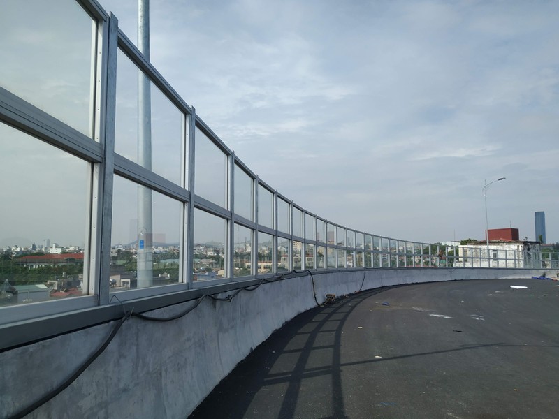 Một số đoạn rào chắn trên đường dẫn lên cầu phía phường Minh Khai, quận Hồng Bàng đã được lắp kính. |