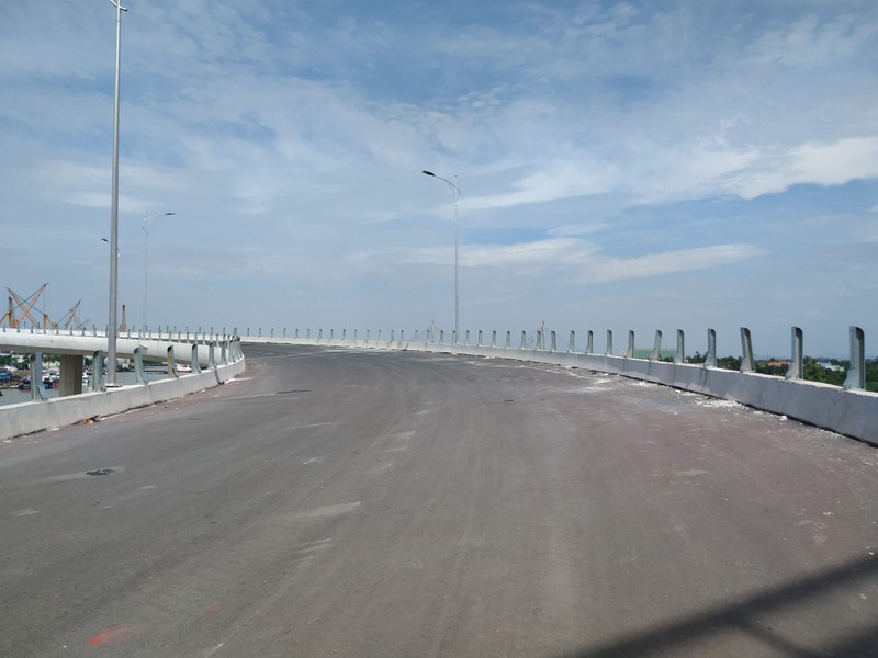 Mặt đường dẫn lên cầu phía phường Minh Khai, quận Hồng Bàng đã được trải nhựa, tuy nhiên thành cầu vẫn chưa được lắp hết thiết bị an toàn. |