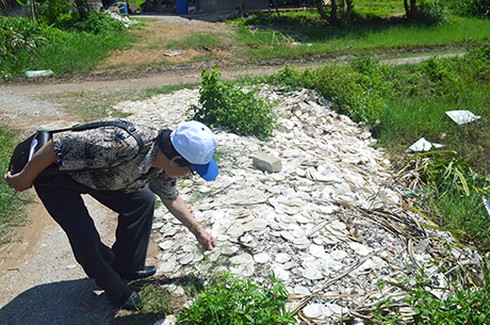 | Sau khi tách lấy ruột, vỏ hà được dùng làm “đá” rải đường. |