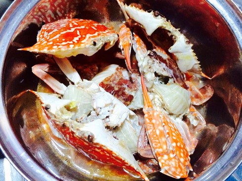 Nêm gia vị vào ghẹ cho ngấm rồi cho thêm nước đủ canh cho cả nhà, đun sôi nồi canh.