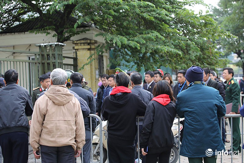 Người hâm mộ tới xếp hàng từ sớm trước cổng trụ sở VFF (Mỹ Đình, Hà Nội). |