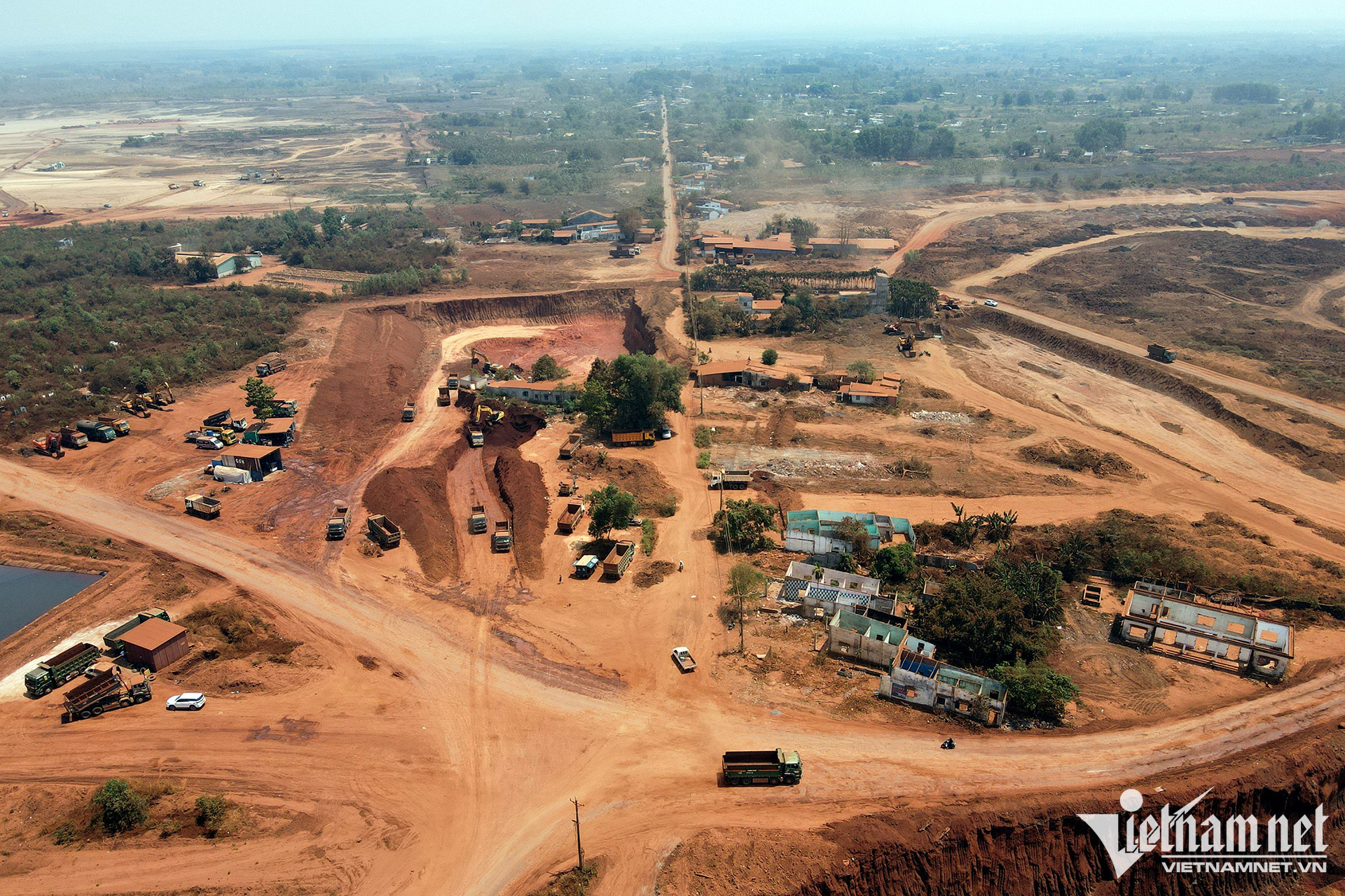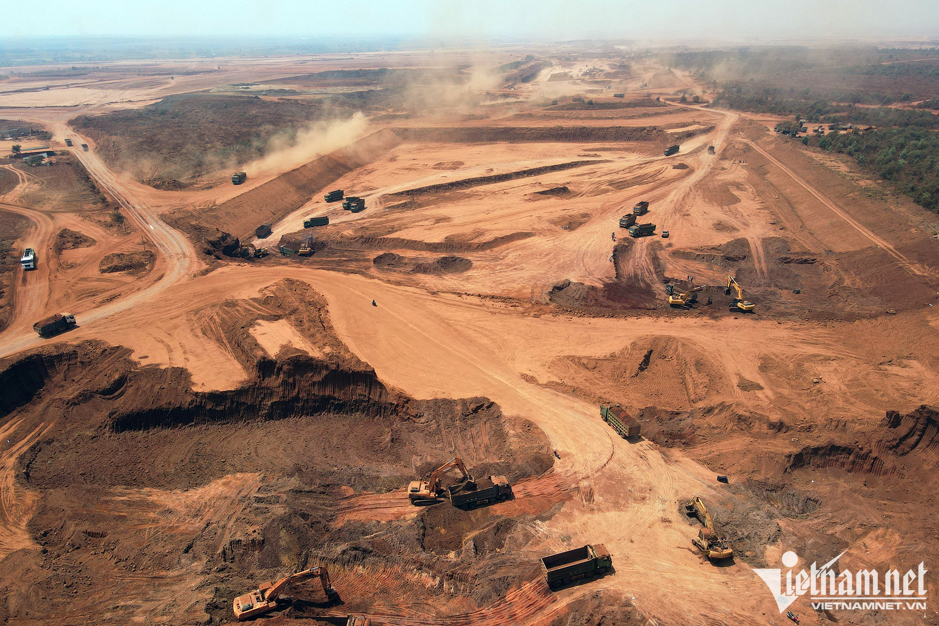 Gần như toàn bộ mặt bằng dự án đã được rà phá bom mìn làm phẳng. Đến nay, cả một khu vực rộng lớn vẫn còn một màu vàng đỏ của đất bazan. Trước đó, công nhân đã làm việc xuyên Tết Nguyên đán Quý Mão.