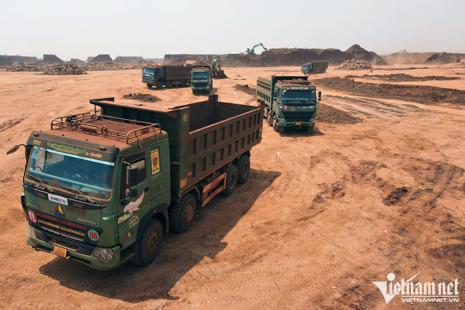 Cảnh nhộn nhịp trên công trường xây dựng sân bay Long Thành