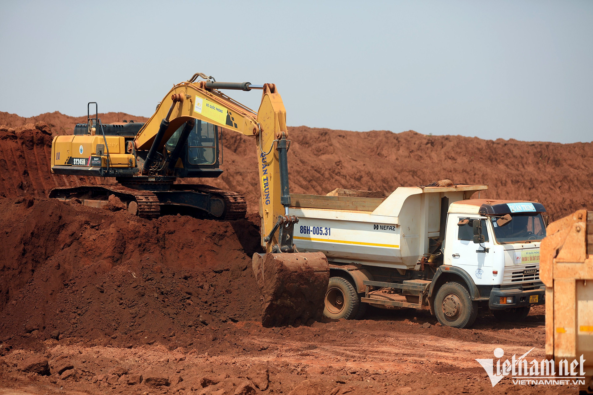 Hiện nay, công trường có khoảng 2.000 đầu máy thiết bị và 2.500 nhân sự hoạt động, đảm bảo công suất đào lấp tối đa đạt 500.000m3 đất/ngày. Theo ACV, đến nay đã san lấp được 60 triệu m3 đất, tương đương 52% khối lượng công việc.