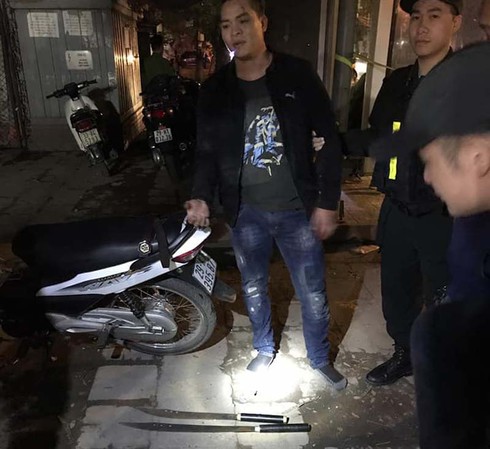 Điều tra tại chỗ, đối tượng Nguyễn Ngọc Huy (26 tuổi ở Bồ Đề, Long Biên, Hà Nội) khai nhận đang trên đường đi gặp 1 nhóm đối tượng khác để thanh toán vì mâu thuẫn cá nhân.