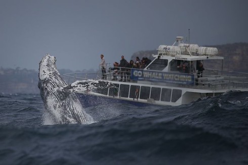 Video ghi lại cảnh tượng ngoài khơi vùng biển từ Long Reef tới Manly Beach (Úc) cho thấy, con cá voi lưng gù bật lên khỏi mặt nước tại vị trí cách tàu chỉ vài mét.