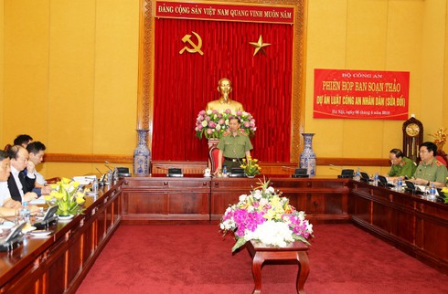 Thượng tướng Tô Lâm, Ủy viên Bộ Chính trị, Bộ trưởng Bộ Công an, Trưởng Ban soạn thảo chủ trì phiên họp; cùng dự có Thượng tướng Lê Quý Vương, Ủy viên Trung ương Đảng, Thứ trưởng Bộ Công an, Phó Trưởng Ban soạn thảo…