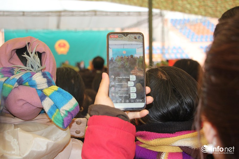 | Một người dân phát trực tiếp diễn biến phiên tòa trên Facebook. |
