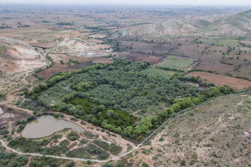 Khu vực 35 mẫu đất rộng lớn được phủ cây xanh khác hẳn những mảnh đất khô cằn xung quanh |