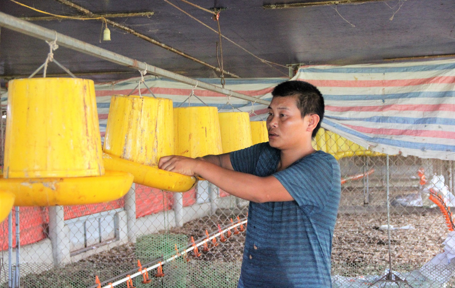 Anh Thìn chia sẻ: “Đầu tháng 3 năm nay, tôi vay gần 70 triệu đồng mua 6.000 con giống. Đến nay, gà đạt đủ trọng lượng nhưng chưa xuất bán. Gà bị chết, tôi lâm vào cảnh nợ nần”.