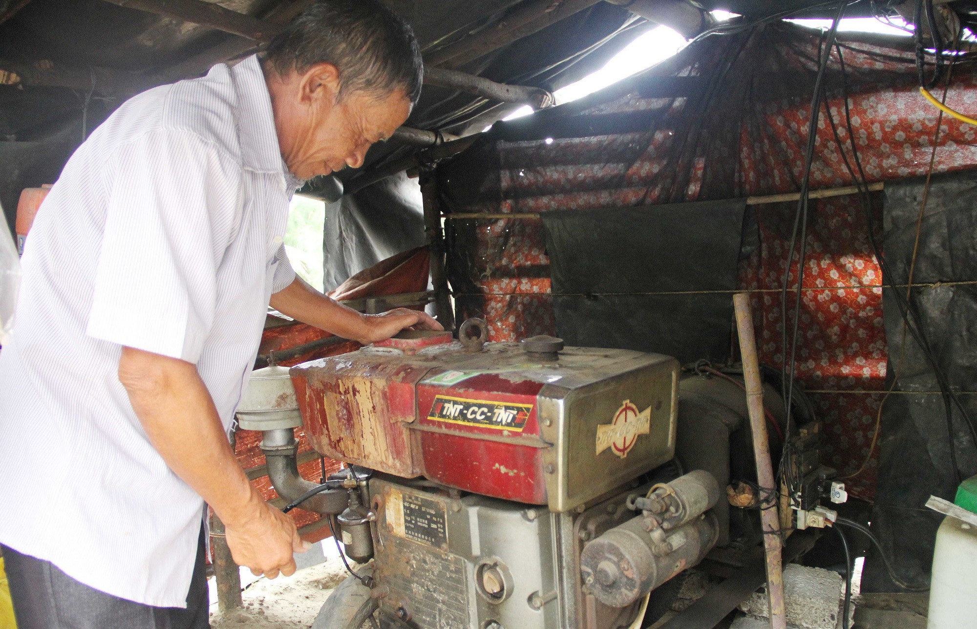 Chủ trang trại chăn nuôi chuẩn bị sẵn máy phát điện để phòng sự cố, tránh thiệt hại. Ảnh: Việt Hòa