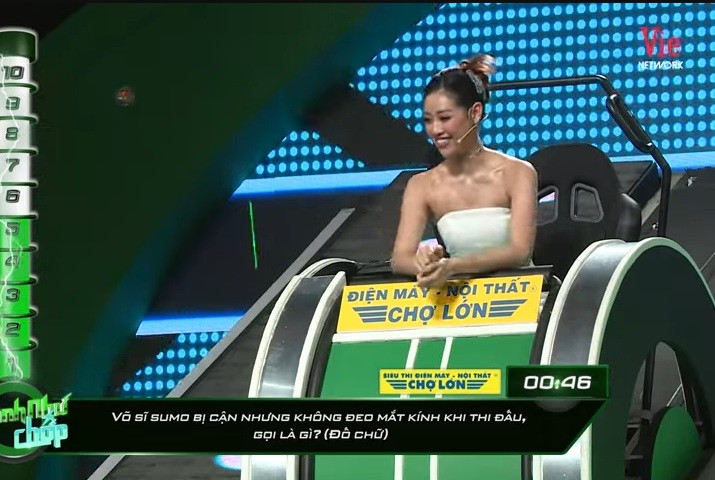 Ngoài ra, trong lượt chơi của mình, Khánh Vân cũng gặp một câu đố chữ khác rất thú vị: Võ sĩ Sumo bị cận nhưng không đeo mắt kính, gọi là gì?