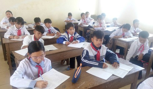 Em Hiếu ngồi hàng trên cùng phía bên phải có hoàn cảnh gia đình rất khó khăn |