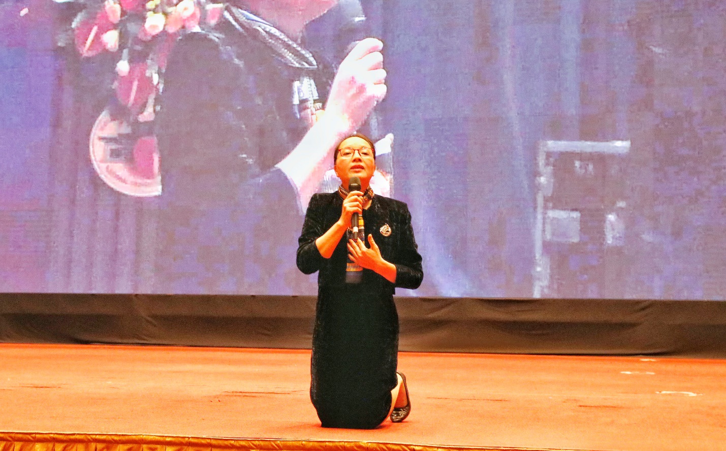 Để làm thay đổi không khí đang trùng xuống ở hội trường, cô Khánh Tuân chia sẻ thêm về câu nói tâm đắc nhất trong cuộc đời mình, “con chim Anh Vũ dù biết nói thì vẫn chỉ là loài chim; con Tinh Tinh dù biết nói thì vẫn chỉ là loài thú; còn con người, tuy biết nói, hình tướng là người nhưng nếu không có nhân cách, lễ nghĩa làm người thì cũng chỉ như con thú”.