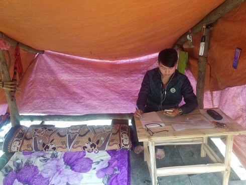 Cậu sinh viên dựng lán học online giữa núi rừng