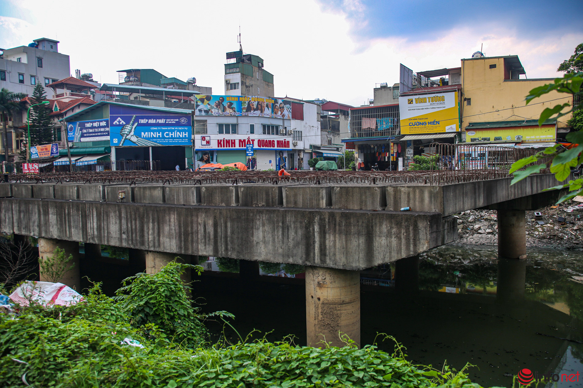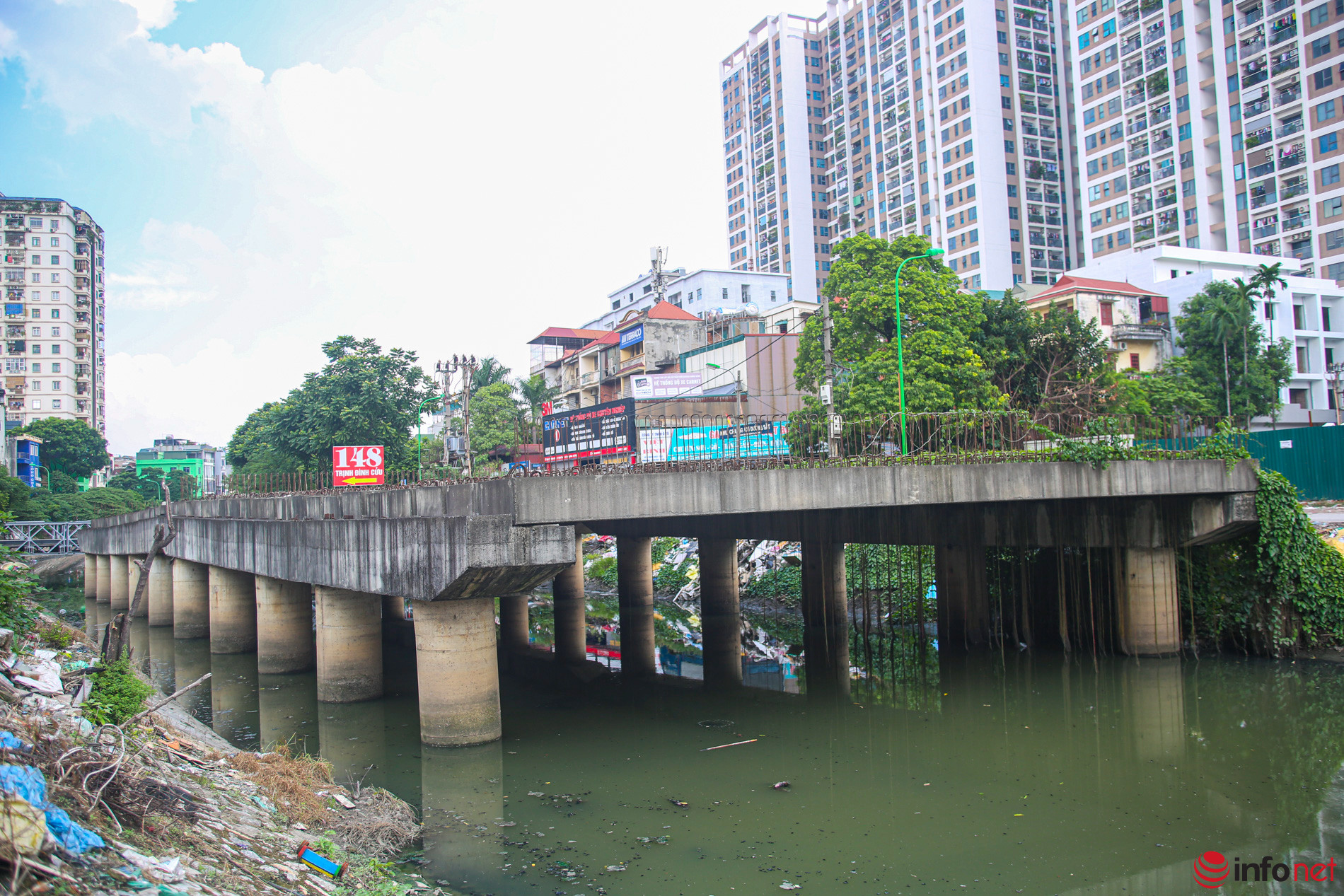 Gần 10 năm bị lãng quên, cây cầu qua sông Lừ ở phố Trịnh Đình Cửu ở quận Hoàng Mai vẫn dở dang, nằm chơ vơ, hoen gỉ, trở thành nơi vứt rác gây ô nhiễm môi trường, mất mỹ quan đô thị.