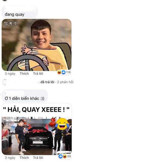 Có lẽ do tên mình được "réo" quá nhiều, nên mới đây trên trang cá nhân, cầu thủ Quang Hải đã lên tiếng trêu đùa: "Bạn nào cần đón nữa không, để đón luôn một thể nào? Chứ bắt quay xe nhiều quá!"