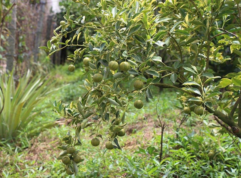 Tắc cẩm thạch được trồng trong vườn nhà ông Trung. |