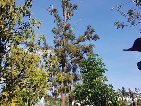 Dù là xum xuê nhưng phần trên của cây đã có nhiều cành khô. |