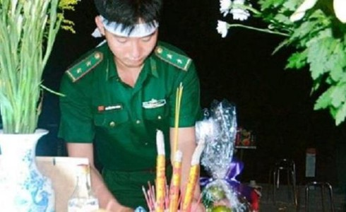 Cách xa hàng ngàn cây số, Trung úy Nguyễn Đình Thông đau đớn thắp nén nhang tiễn biệt người cha kính yêu của mình |