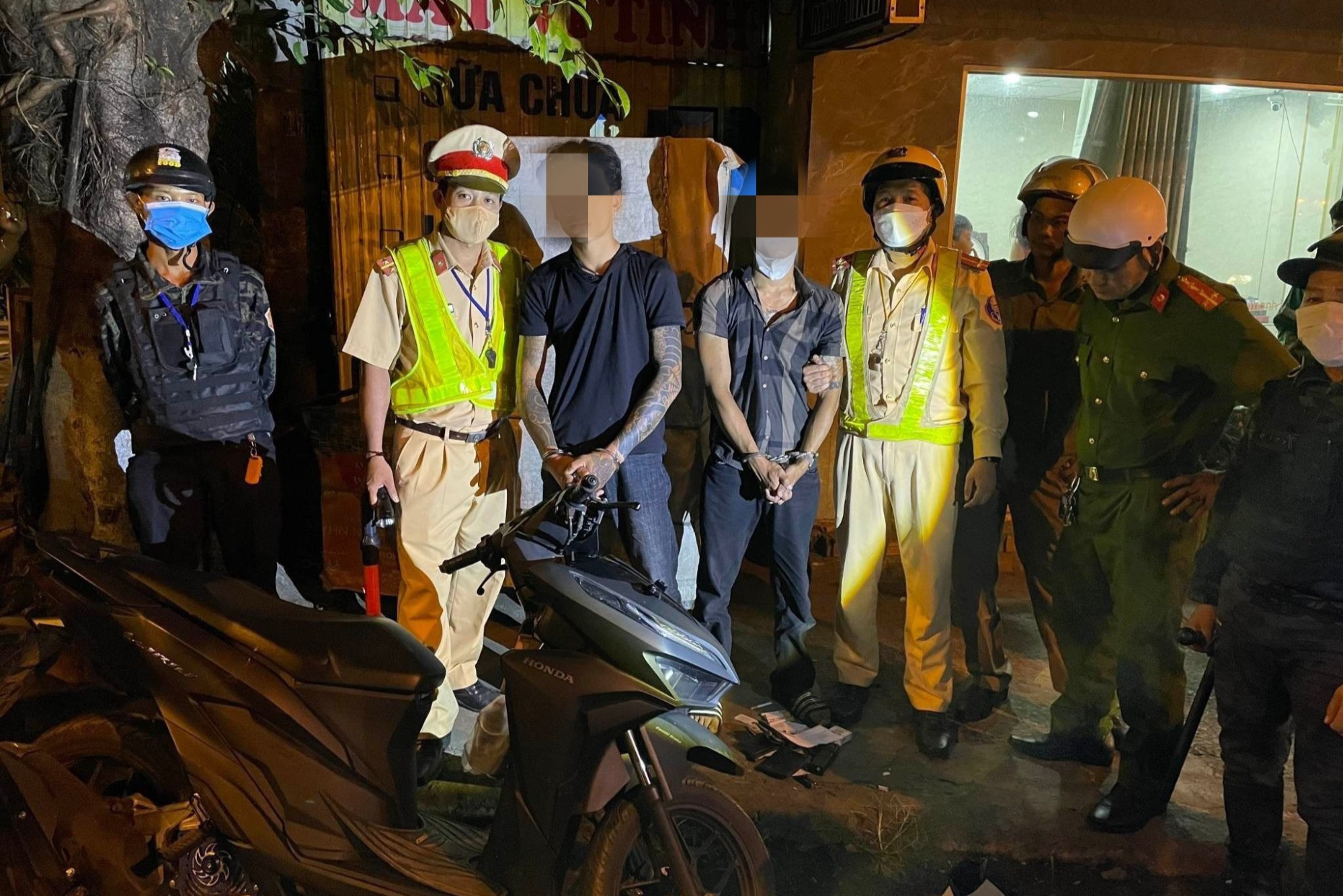 Khi bị lực lượng CSGT yêu cầu dừng lại để kiểm tra, 2 đối tượng này nhanh chóng điều khiển xe máy bỏ chạy.
