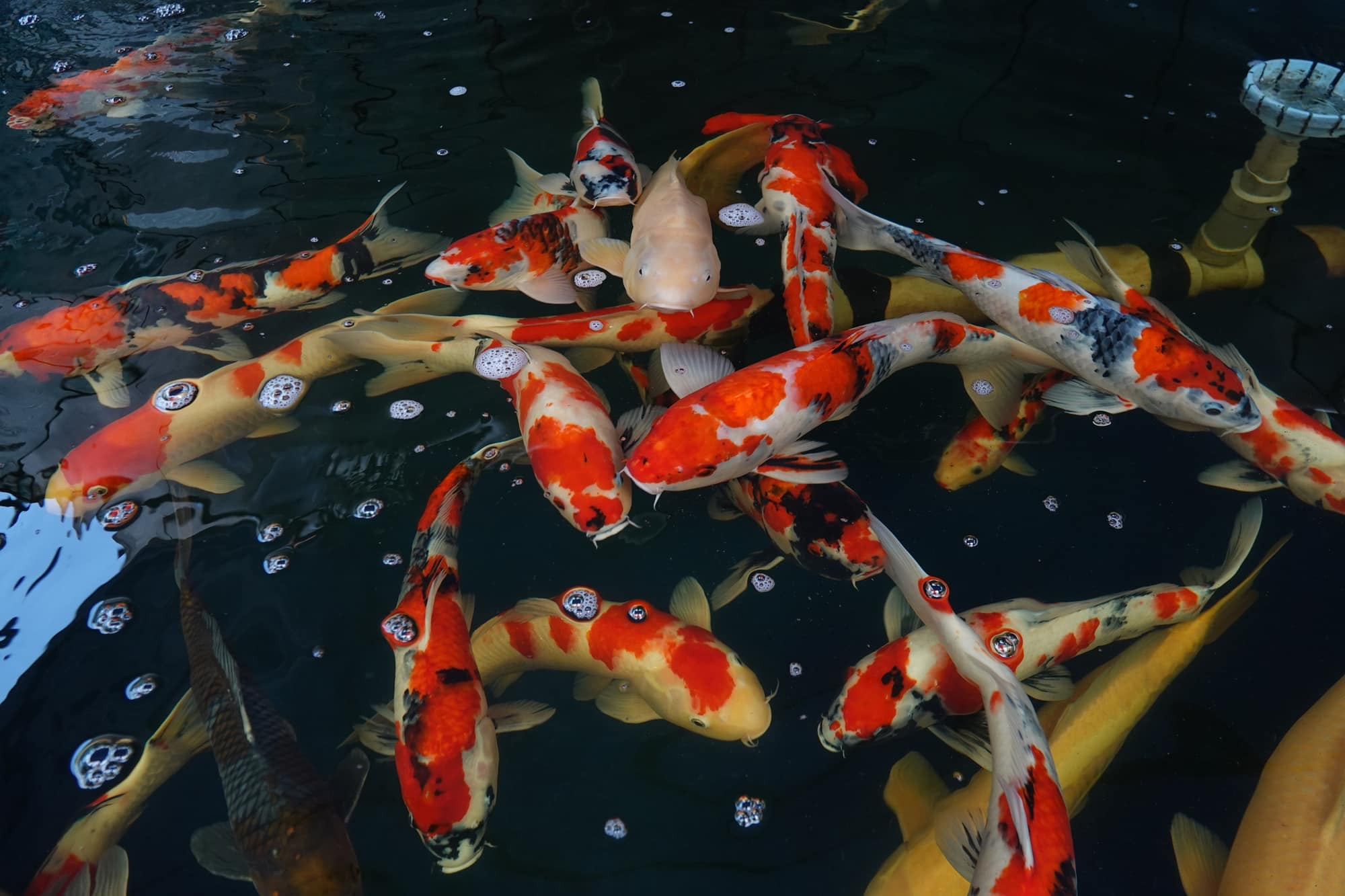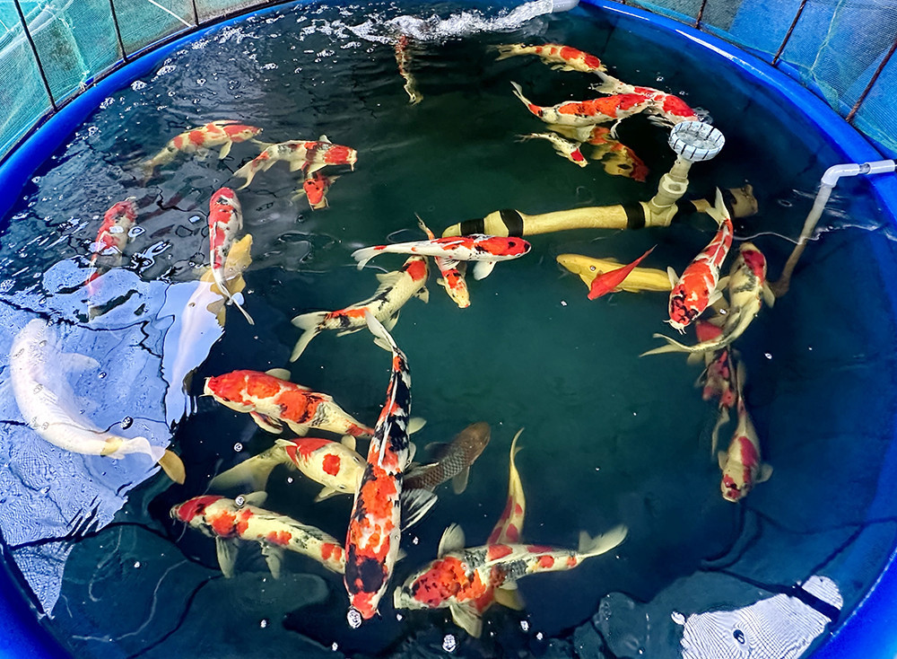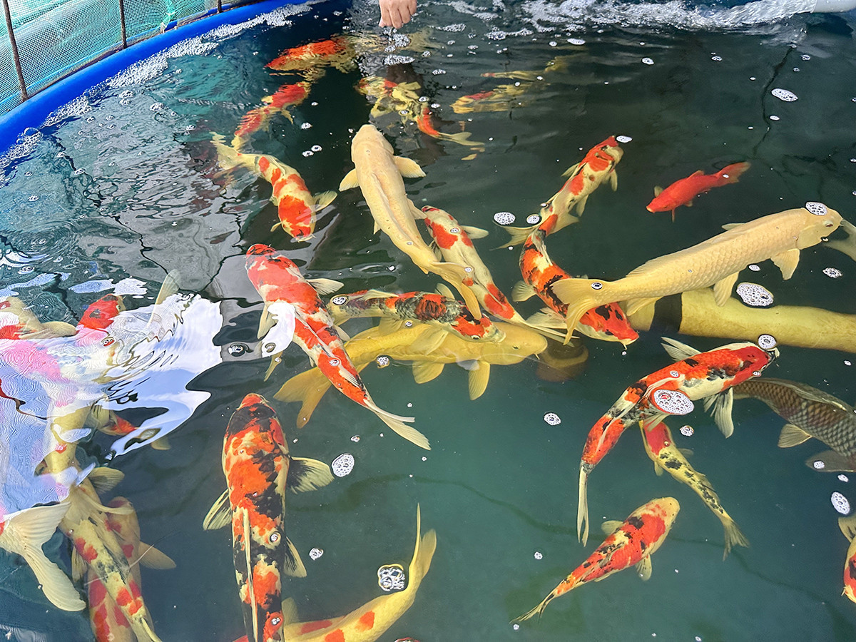 Trại luôn duy trì hàng trăm cá Koi nhập từ Nhật, cá thuần chủng F1 và hàng ngàn cá Koi bình dân để phục vụ nhu cầu của khách.