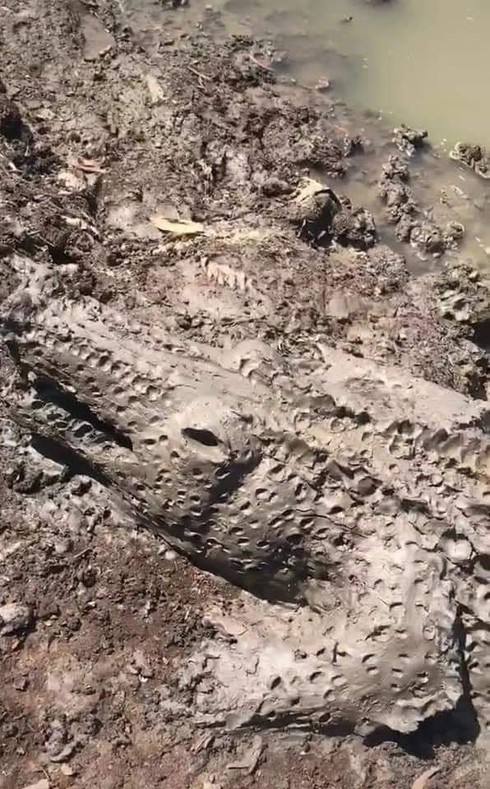 Quan sát kỹ con cá sấu, chàng trai mới phát hiện ra đó thực ra là tác phẩm của một ai đó rất khéo tay. Con cá sấu được tạo nên bởi đống bùn quanh kênh nước.