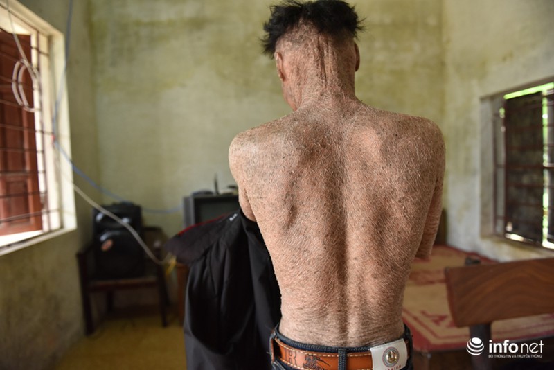 Những lớp da bong tróc, sần sùi như vảy cá này đã từng là nỗi ám ảnh của Thọ. Giờ đây, anh chàng đã có thể sống lạc quan, vui vẻ hơn, tự tin hơn. |