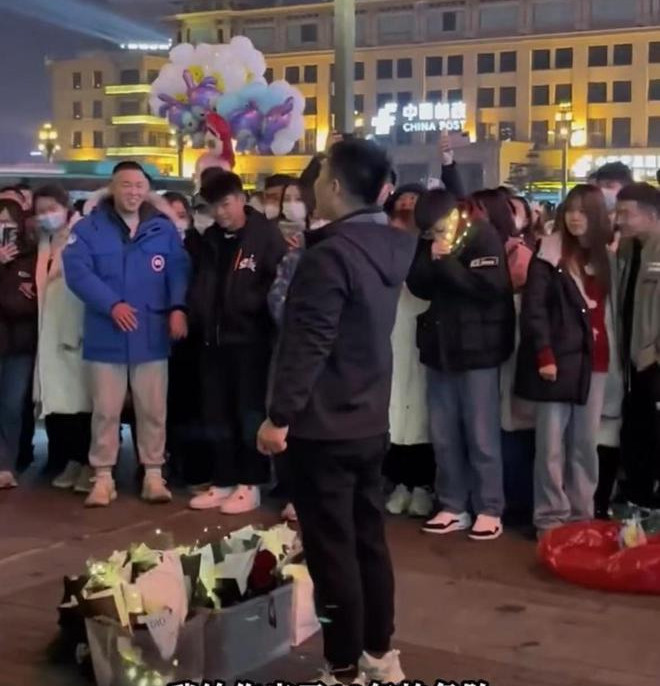 Bất chấp sự bối rối của bạn gái, anh hét lớn: "Hoa Hoa, em sẽ lấy anh chứ? Hoa Hoa, anh muốn cho em một mái ấm gia đình".