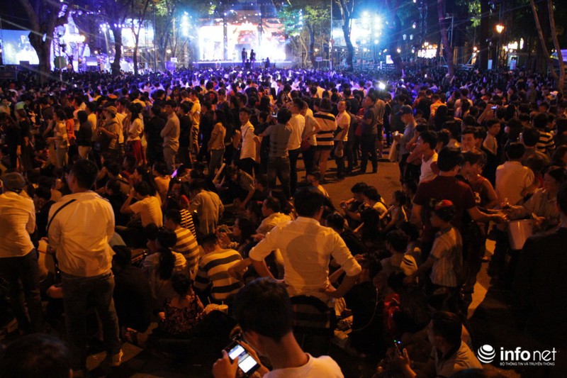 Biển người tập trung thưởng thức chương trình nghệ thuật chào đón năm mới tại đường Lê Duẩn. |