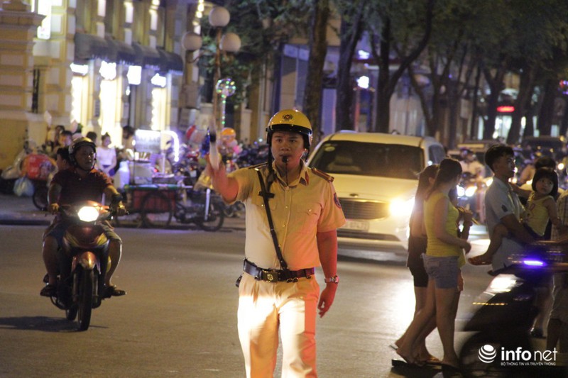 Đến 20h, dòng người đổ về khu trung tâm vui chơi, chờ đón bắn pháo hoa đón năm mới ngày càng đông. Một số tuyến đường như Đồng Khởi, đường Pasteur… bắt đầu xuất hiện ùn ứ giao thông.