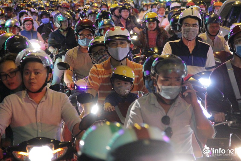 Ghi nhận của PV, ngay từ chiều tối 31/12, người dân bắt đầu đổ xuống các tuyến đường hướng vào trung tâm Sài Gòn như: Nguyễn Thị Minh Khai, Nguyễn Tất Thành, Đại lộ Mai Chí Thọ, Nam Kỳ Khởi Nghĩa, Cách Mạng Tháng Tám…